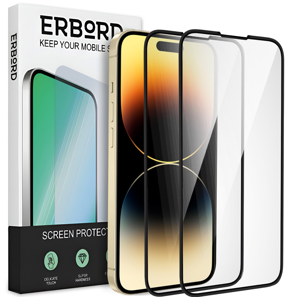 2x Szkło Hartowane do iPhone 14 Pro, ERBORD 3D pełne, szybka na cały ekran