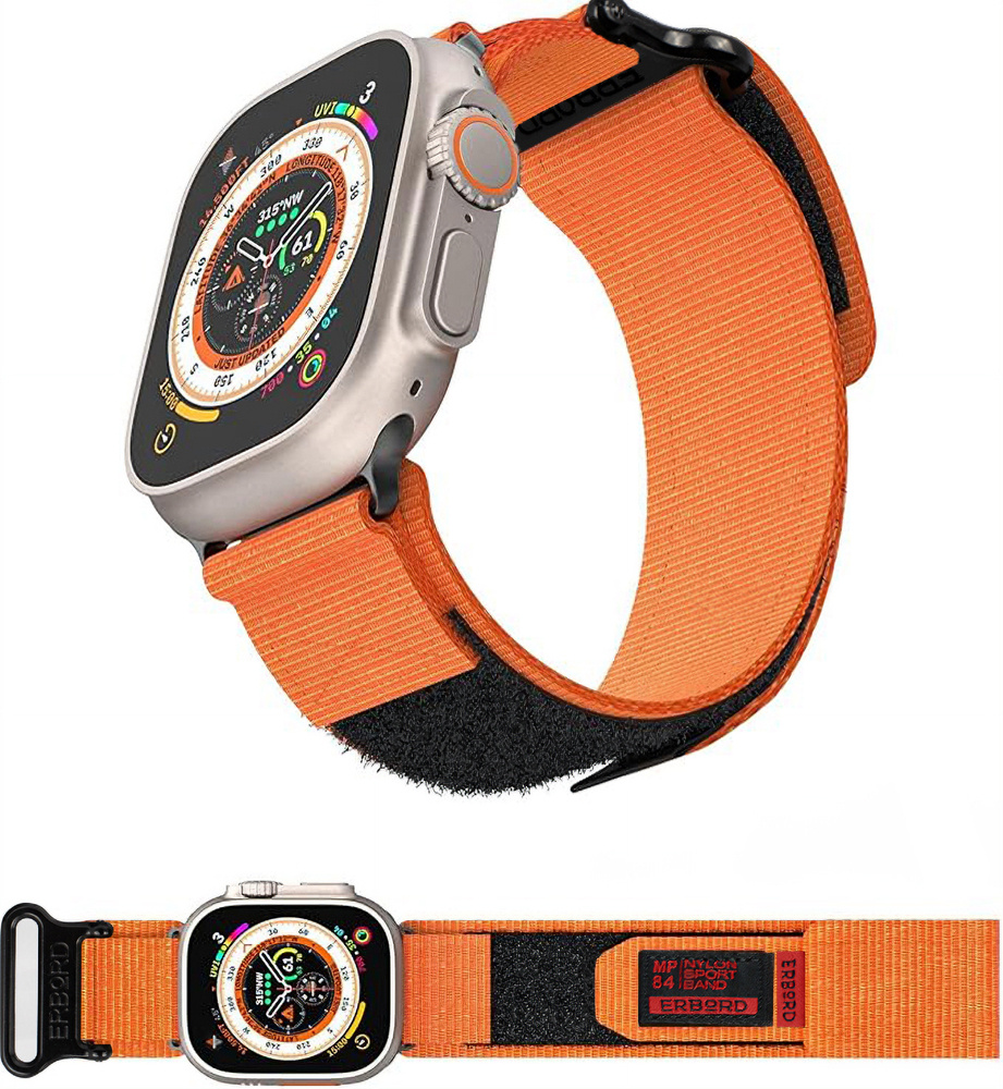 Pasek Nylonowy ERBORD MP84 do Apple Watch 1/2/3/4/5/6/7/8/9/10/11/SE Ultra 1/2/3 42/44/45/46/49mm, Pomarańczowy