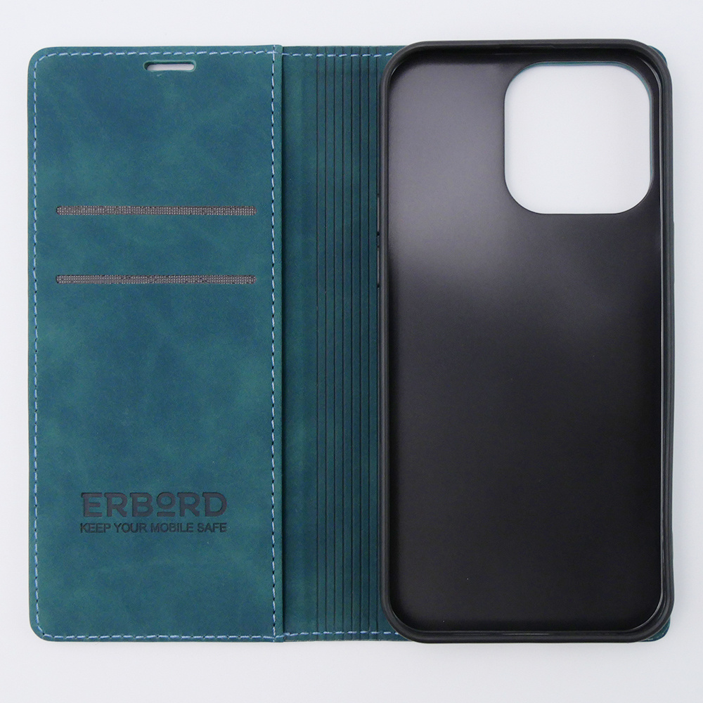 Etui do iPhone 15 Pro Max, ERBORD Vintage, portfel z klapką, niebieskie to precyzyjnie wykonany z wysokiej jakości skóry ekologicznej oraz plastiku pokrowiec z klapką. Obudowa jest niezwykle wytrzymała i zapewnia ochronę telefonu z każdej ze stron.