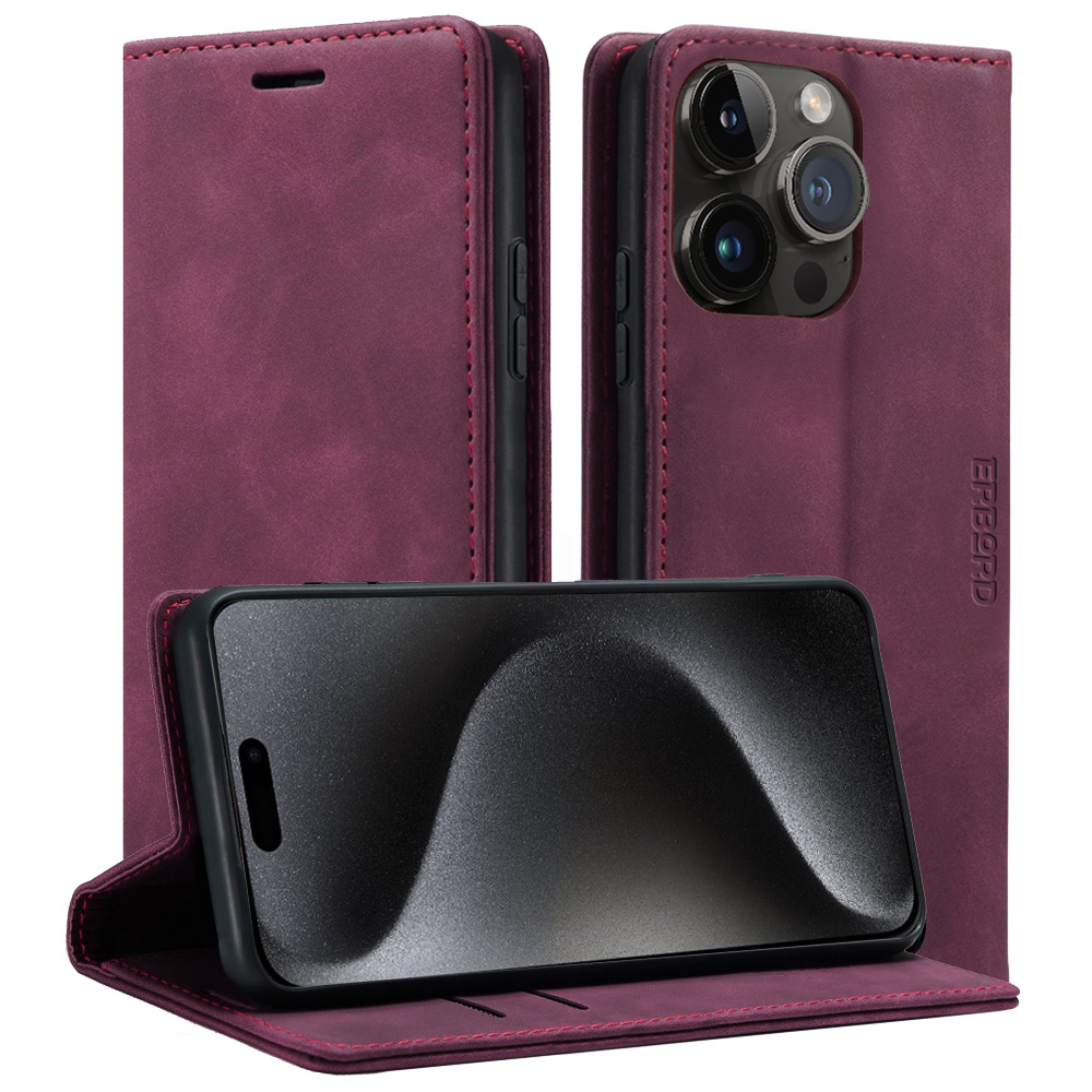 1 x Etui do iPhone 15 Pro Max, ERBORD Vintage, portfel z klapką, czerwone