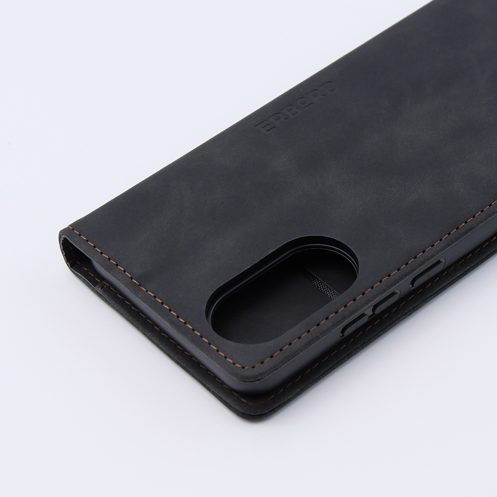 Etui do Oppo A78 4G, ERBORD Vintage, portfel z klapką, czarne to precyzyjnie wykonany z wysokiej jakości skóry ekologicznej oraz plastiku pokrowiec z klapką. Obudowa jest niezwykle wytrzymała i zapewnia ochronę telefonu z każdej ze stron.