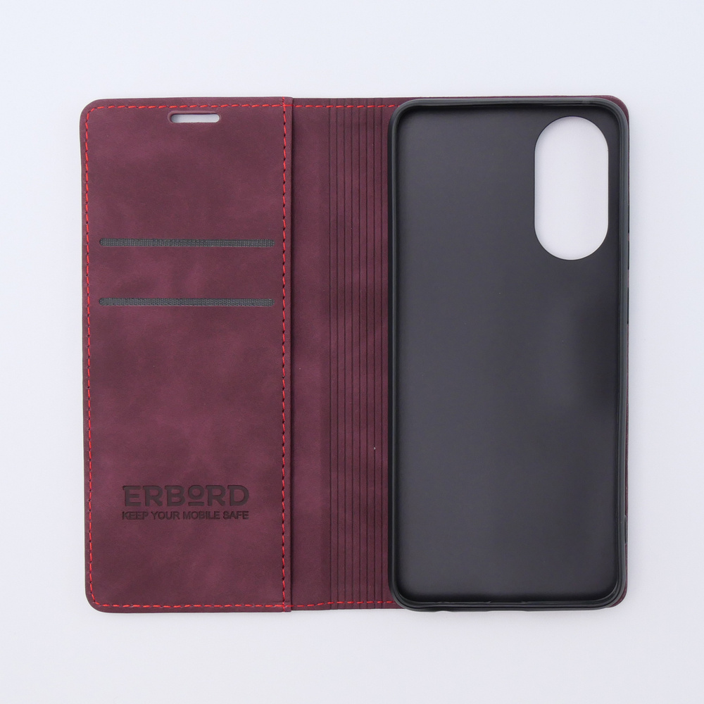 Etui do Oppo A78 4G, ERBORD Vintage, portfel z klapką, czerwone to precyzyjnie wykonany z wysokiej jakości skóry ekologicznej oraz plastiku pokrowiec z klapką. Obudowa jest niezwykle wytrzymała i zapewnia ochronę telefonu z każdej ze stron.