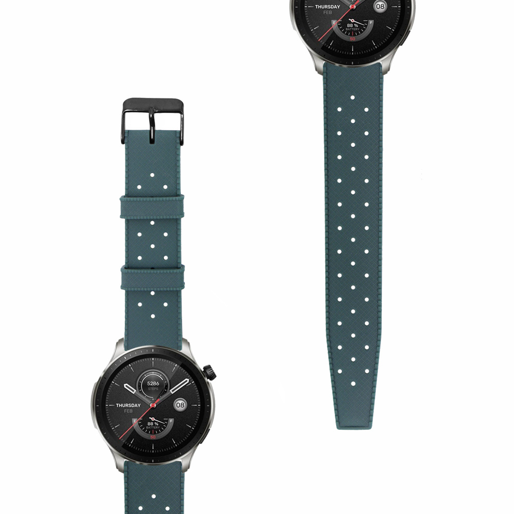 Jego uniwersalny design sprawia, że pasuje do większości modeli smartwatchy, a dostępność w różnych kolorach pozwala na dopasowanie go do indywidualnych preferencji. Pasek jest łatwy w montażu i demontażu, co umożliwia szybką zmianę stylu zegarka, a dzięki specjalnej konstrukcji z dziurkami pasek dobrze odprowadza ciepło co idealnie sprawdzi się podczas sportu.