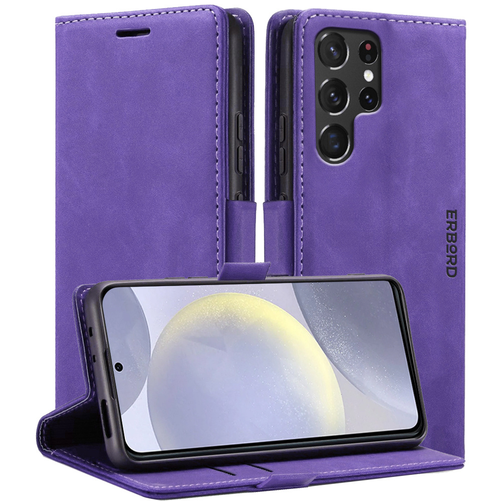 1 x Etui do Samsung Galaxy S24 Ultra, ERBORD Vintage, portfel z klapką, fioletowe