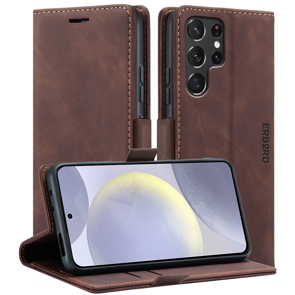 1 x Etui do Samsung Galaxy S24 Ultra, ERBORD Vintage, portfel z klapką, kawowe