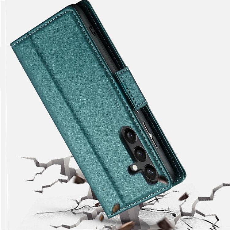 1 x Etui do Samsung Galaxy S24, ERBORD Glossy Litchi, portfel z klapką, zielone