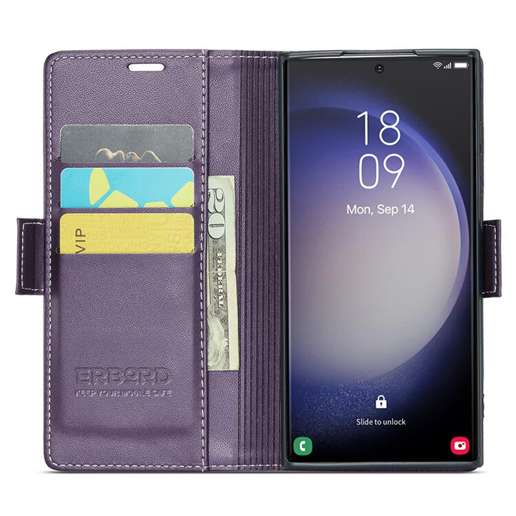 1 x Etui do Samsung Galaxy S24 Ultra, ERBORD Glossy Litchi, portfel z klapką, fioletowe