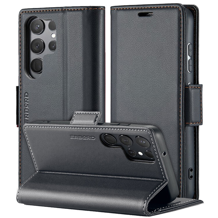 Etui do Samsung Galaxy S24 Ultra, ERBORD Glossy Litchi, portfel z klapką, czarne to precyzyjnie wykonany z wysokiej jakości skóry ekologicznej oraz plastiku pokrowiec z klapką. Obudowa jest niezwykle wytrzymała i zapewnia ochronę telefonu z każdej ze stron.