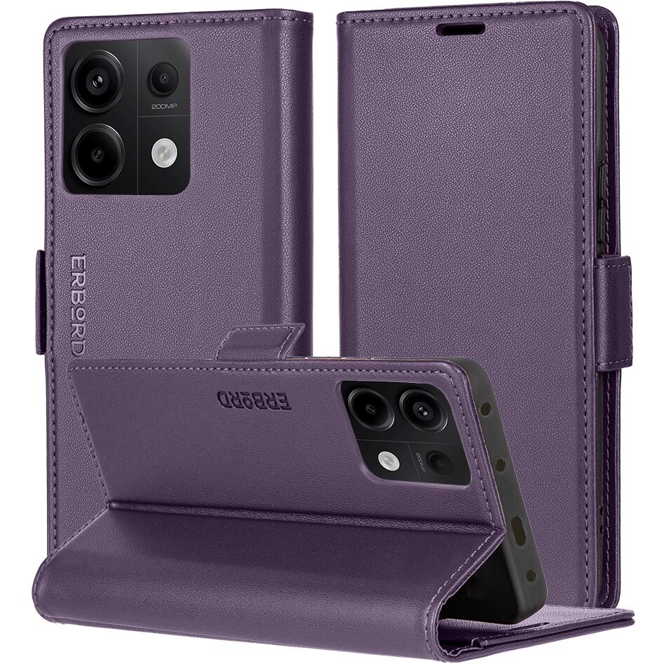 Etui do Xiaomi Redmi Note 13 Pro 5G, ERBORD Glossy Litchi, portfel z klapką, fioletowe to precyzyjnie wykonany z wysokiej jakości skóry ekologicznej oraz plastiku pokrowiec z klapką. Obudowa jest niezwykle wytrzymała i zapewnia ochronę telefonu z każdej ze stron.