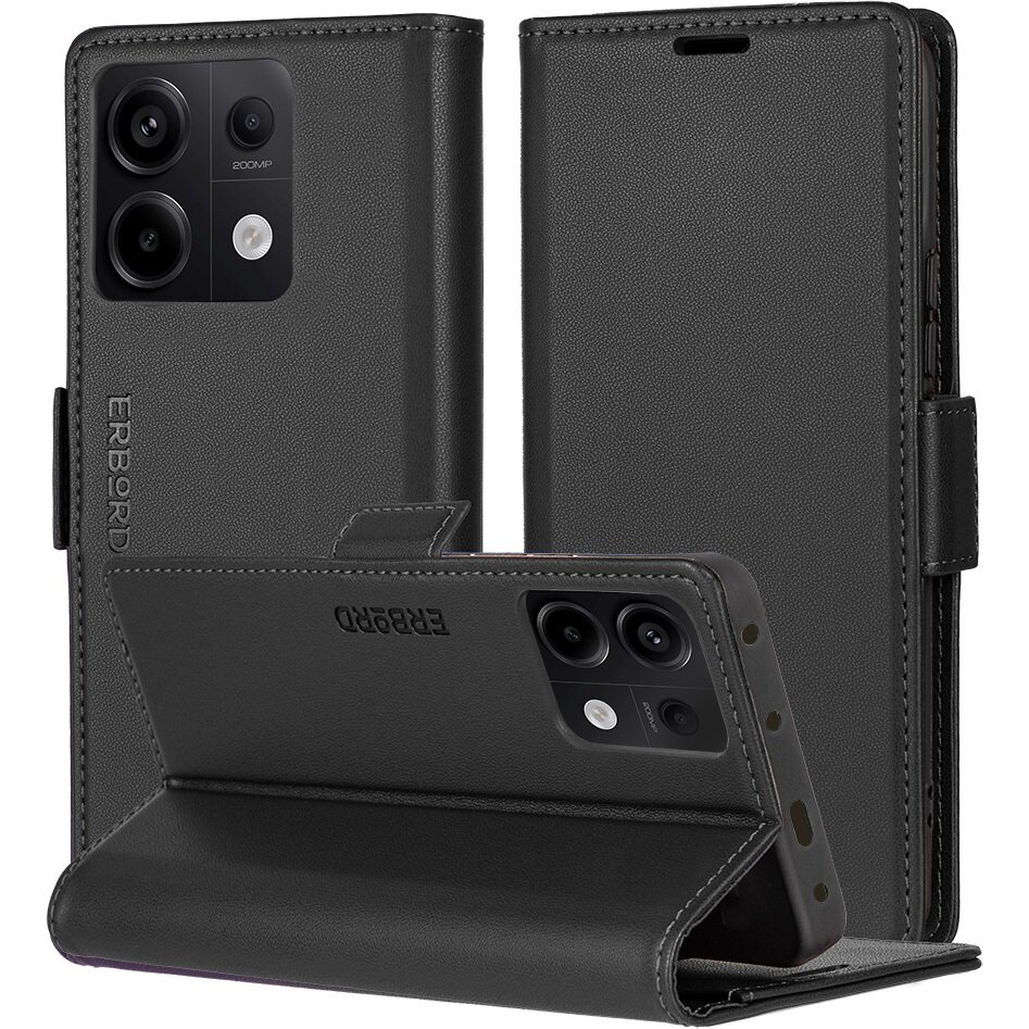1 x Etui do Xiaomi Redmi Note 13 Pro 5G, ERBORD Glossy Litchi, portfel z klapką, czarne