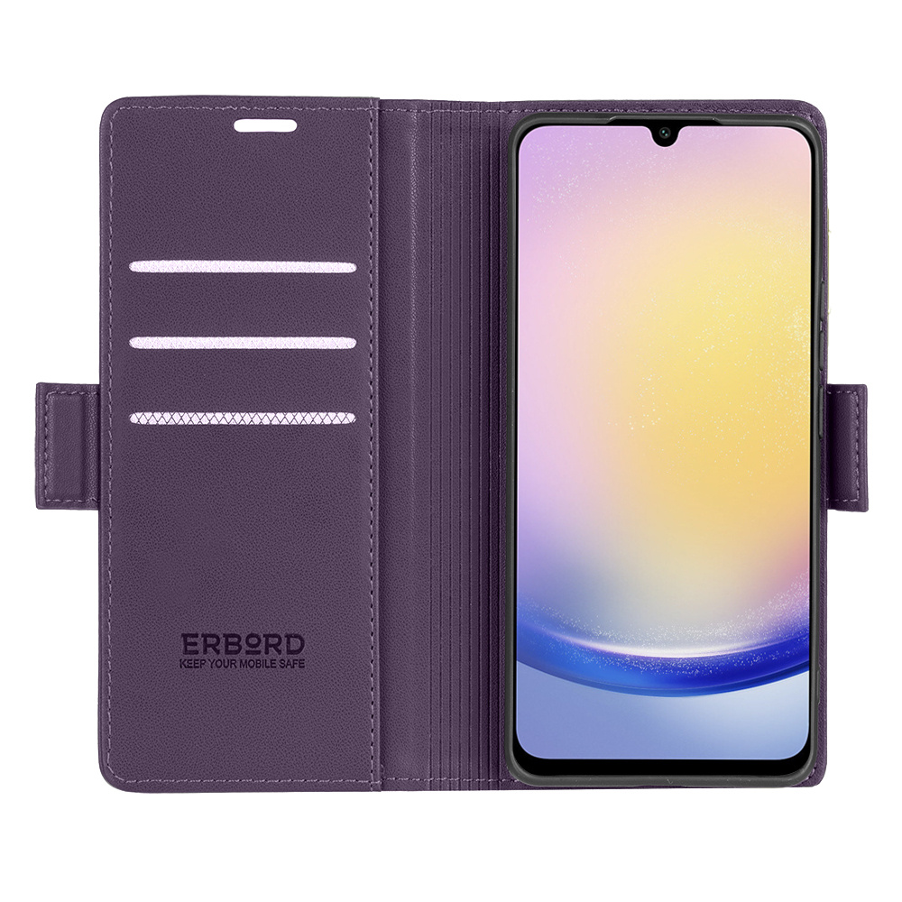 Etui do Samsung Galaxy A15 4G / 5G, ERBORD Glossy Litchi, portfel z klapką, fioletowe to precyzyjnie wykonany z wysokiej jakości skóry ekologicznej oraz plastiku pokrowiec z klapką. Obudowa jest niezwykle wytrzymała i zapewnia ochronę telefonu z każdej ze stron.