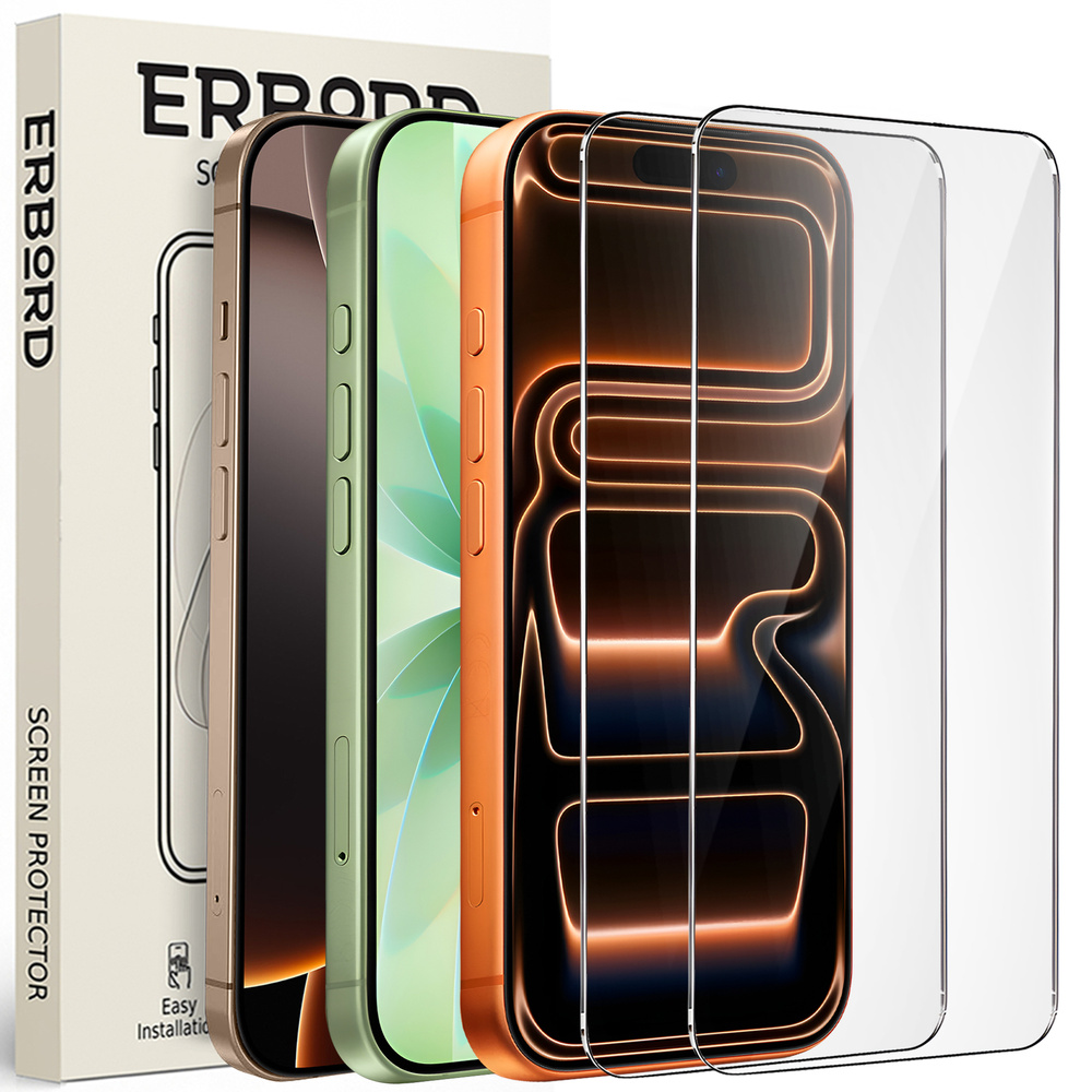 2x Szkło Hartowane do iPhone 17 Pro/17/16 Pro, ERBORD 9H Hard Glass, szybka