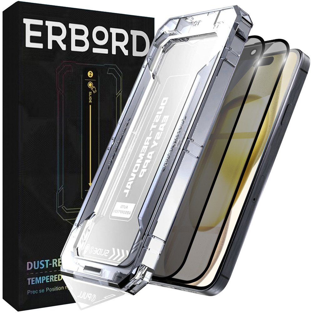 2x Szkło Hartowane prywatyzujące do iPhone 15 Plus, ERBORD 9H Easy App Anti-Peep