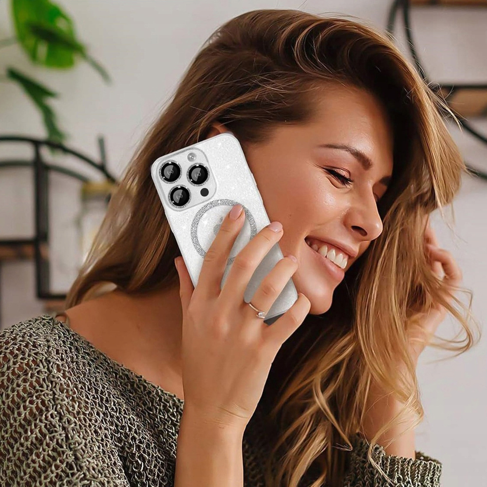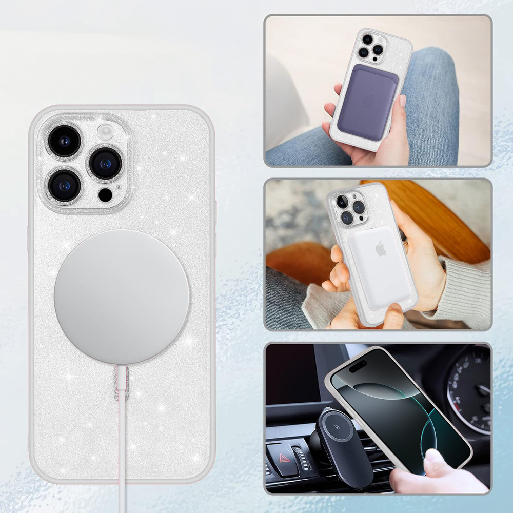 - 1 x Etui do iPhone 16 Pro Max, ERBORD Glitter MagSafe, przezroczyste + Szkło na ekran