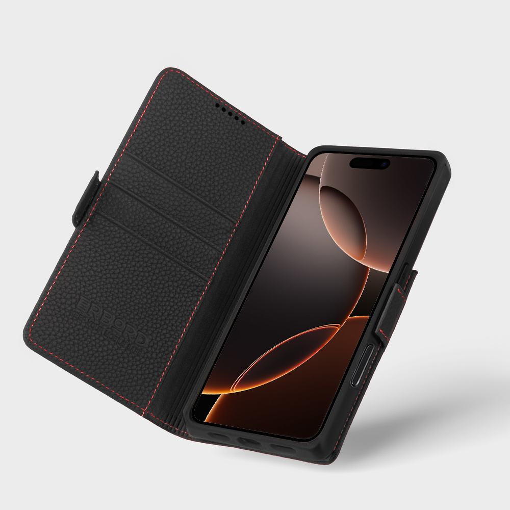 1 x Etui skórzane do iPhone 16 Pro Max, ERBORD portfel z klapką, czarne