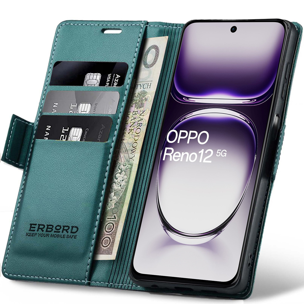 1 x Etui do Oppo Reno 12, ERBORD Glossy Litchi, portfel z klapką, zielone