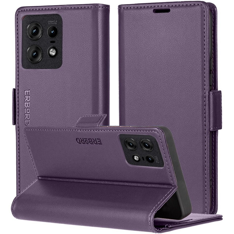 Etui do Motorola Edge 50 Pro, ERBORD Glossy Litchi, portfel z klapką, fioletowe to precyzyjnie wykonany z wysokiej jakości skóry ekologicznej oraz plastiku pokrowiec z klapką. Obudowa jest niezwykle wytrzymała i zapewnia ochronę telefonu z każdej ze stron.