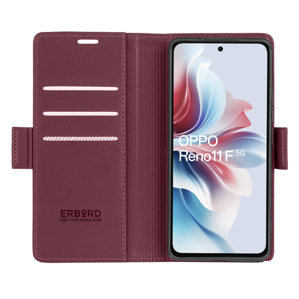 Etui do Oppo Reno 11F, ERBORD Glossy Litchi, portfel z klapką, czerwone to precyzyjnie wykonany z wysokiej jakości skóry ekologicznej oraz plastiku pokrowiec z klapką. Obudowa jest niezwykle wytrzymała i zapewnia ochronę telefonu z każdej ze stron.