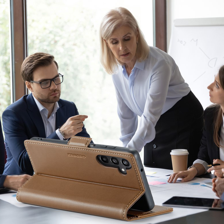 Etui do Samsung Galaxy A16, ERBORD Glossy Litchi, portfel z klapką, brązowe to precyzyjnie wykonany z wysokiej jakości skóry ekologicznej oraz plastiku pokrowiec z klapką. Obudowa jest niezwykle wytrzymała i zapewnia ochronę telefonu z każdej ze stron.