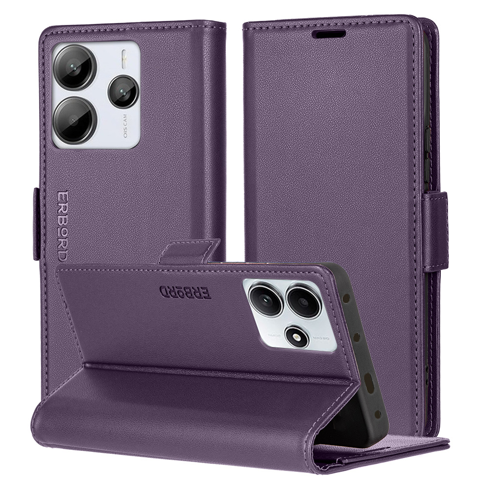 Etui do Xiaomi Redmi Note 14 5G, ERBORD Glossy Litchi, portfel z klapką, fioletowe to precyzyjnie wykonany z wysokiej jakości skóry ekologicznej oraz plastiku pokrowiec z klapką. Obudowa jest niezwykle wytrzymała i zapewnia ochronę telefonu z każdej ze stron.
