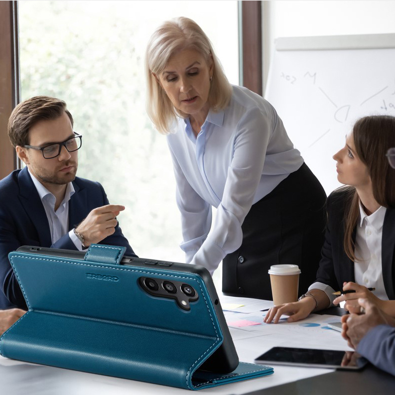 Etui do Samsung Galaxy A36, ERBORD Glossy Litchi, portfel z klapką, niebieskie to precyzyjnie wykonany z wysokiej jakości skóry ekologicznej oraz plastiku pokrowiec z klapką. Obudowa jest niezwykle wytrzymała i zapewnia ochronę telefonu z każdej ze stron.