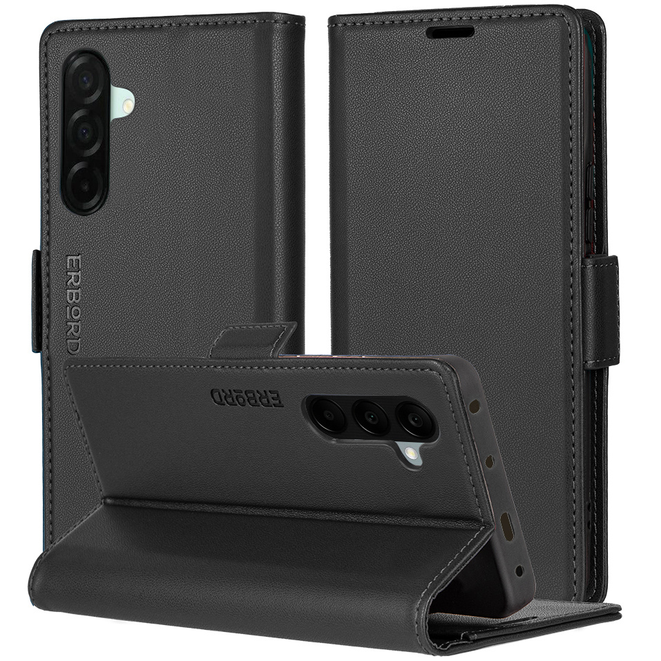 Etui do Samsung Galaxy A26, ERBORD Glossy Litchi, portfel z klapką, czarne to precyzyjnie wykonany z wysokiej jakości skóry ekologicznej oraz plastiku pokrowiec z klapką. Obudowa jest niezwykle wytrzymała i zapewnia ochronę telefonu z każdej ze stron.