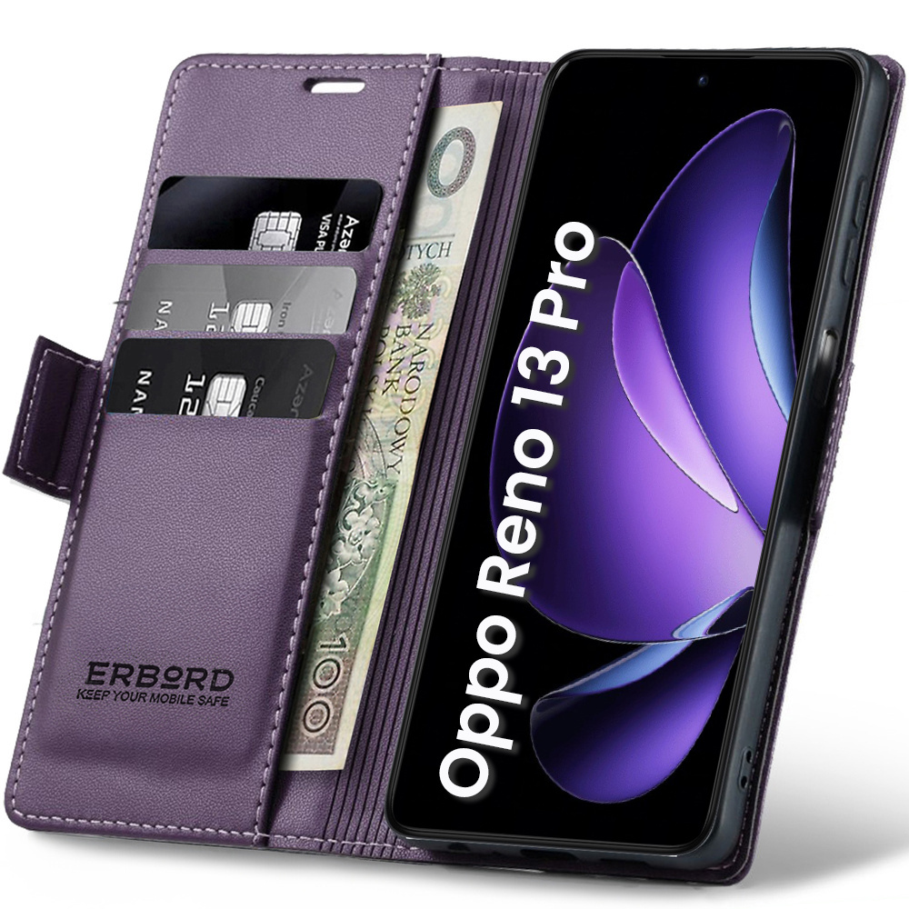 1 x Etui do Oppo Reno 13 Pro, ERBORD Glossy Litchi, portfel z klapką, fioletowe