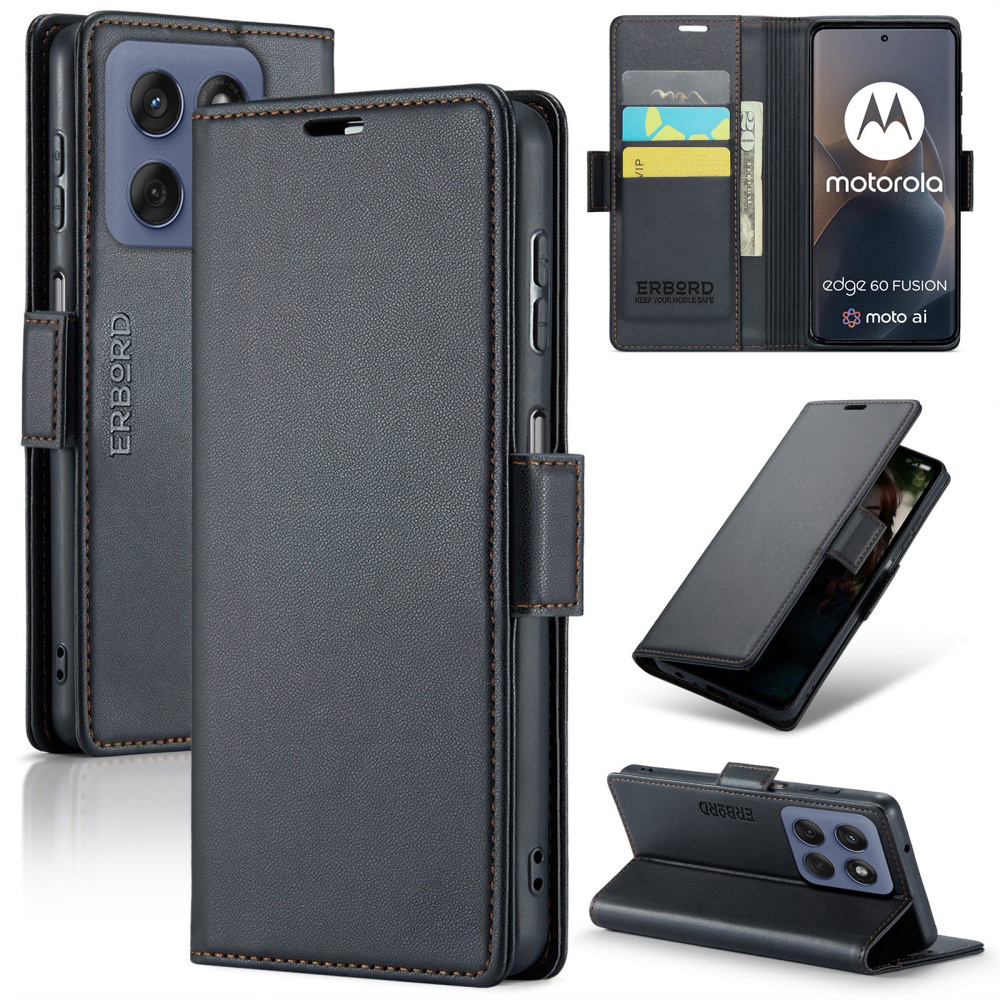 1 x Etui do Motorola Edge 60 / 60 Fusion, ERBORD Glossy Litchi, portfel z klapką, czarne
