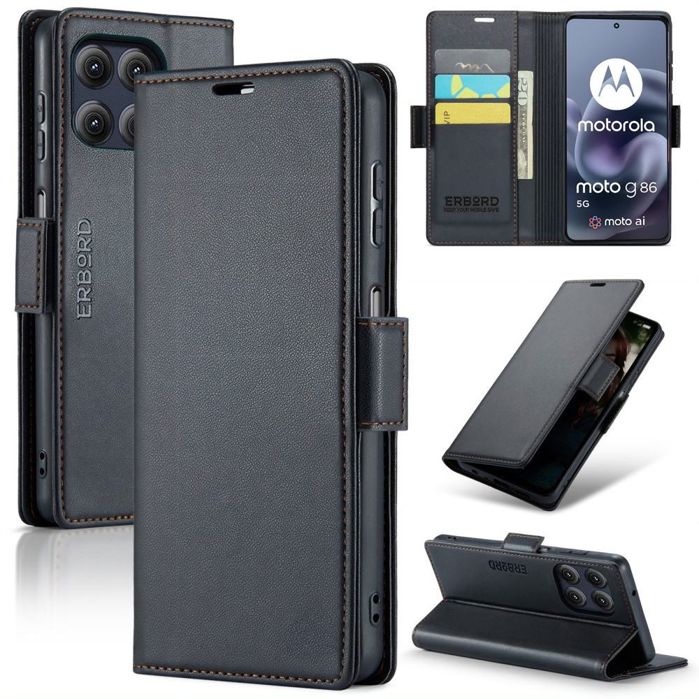 - 1 x Etui do Motorola Moto G86 5G / Motorola Moto G86 Power 5G, ERBORD Glossy Litchi, portfel z klapką, czarne