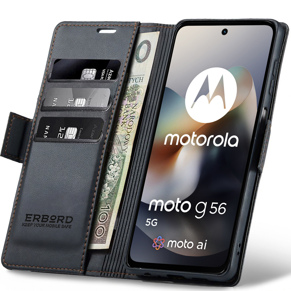 - 1 x Etui do Motorola Moto G56 5G, ERBORD Glossy Litchi, portfel z klapką, czarne