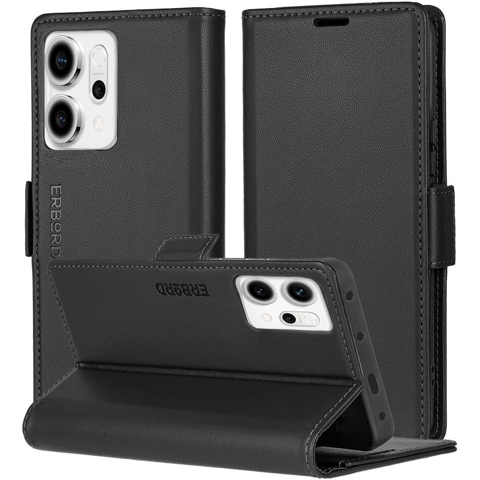 Etui do Oppo Reno 14, ERBORD Glossy Litchi, portfel z klapką, czarne to precyzyjnie wykonany z wysokiej jakości skóry ekologicznej oraz plastiku pokrowiec z klapką. Obudowa jest niezwykle wytrzymała i zapewnia ochronę telefonu z każdej ze stron.